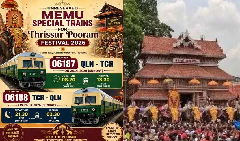 Samakalika Malayalamabout 10 hours agoതൃശ്ശൂര് പൂരപ്രേമികള്ക്കായി പ്രത്യേക മെമു സര്വീസുകള്; ഓടുന്നത് കൊല്ലം- തൃശൂര് റൂട്ടില്, വിശദാംശങ്ങള്