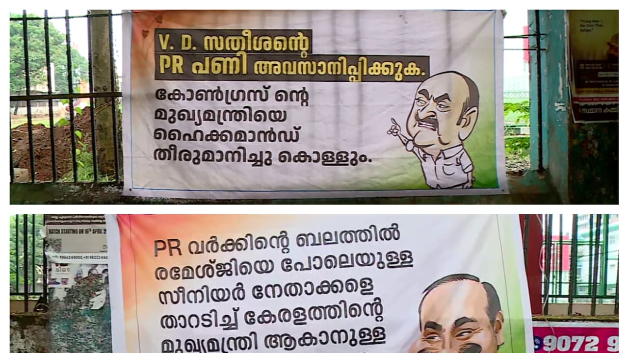 കൊച്ചി ഡിസിസി ഓഫീസിന് എതിർവശം വി.ഡി. സതീശന്റെ നേതൃത്വത്തിനെതിരെ ഫ്ലക്സ് സ്ഥാപിച്ചു. ഡിസിസി ഓഫീസിന്റെ എതിർവശത്താണ് രമേശ് ചെന്നിത്തലയ്ക്കായി ഫ്ലക്സ് ഉയർത്തിയത്. പിആർ വർക്കിന്റെ പിന്തുണയോടെ മുഖ്യമന്ത്രി പദവിയിലേക്ക് ചെന്നിത്തലയെ തള്ളിക്കയറ്റാനുള്ള ശ്രമം നടക്കില്ലെന്ന് ഫ്ലക്സിൽ സൂചിപ്പിച്ചു.